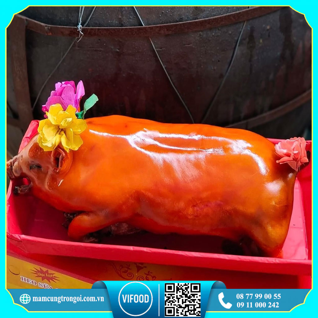 Heo sữa quay loại 3kg là lựa chọn sang trọng và ý nghĩa trong nhiều dịp quan trọng như khai trương, tân gia, cúng tổ tiên, tiệc gia đình… Với kích thước vừa phải, thịt mềm ngọt, da vàng giòn, món ăn này không chỉ đẹp mắt mà còn mang ý nghĩa may mắn, thịnh vượng. Tại VIFOOD, heo sữa quay được chế biến từ nguyên liệu sạch, quay lò than truyền thống, đảm bảo hương vị chuẩn và an toàn thực phẩm.